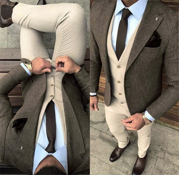 Stand out in a sea of suits in our super-sharp brown tweed effect jacket - paired with a cream waistcoat and trousers for instantly slick style. Singl...
