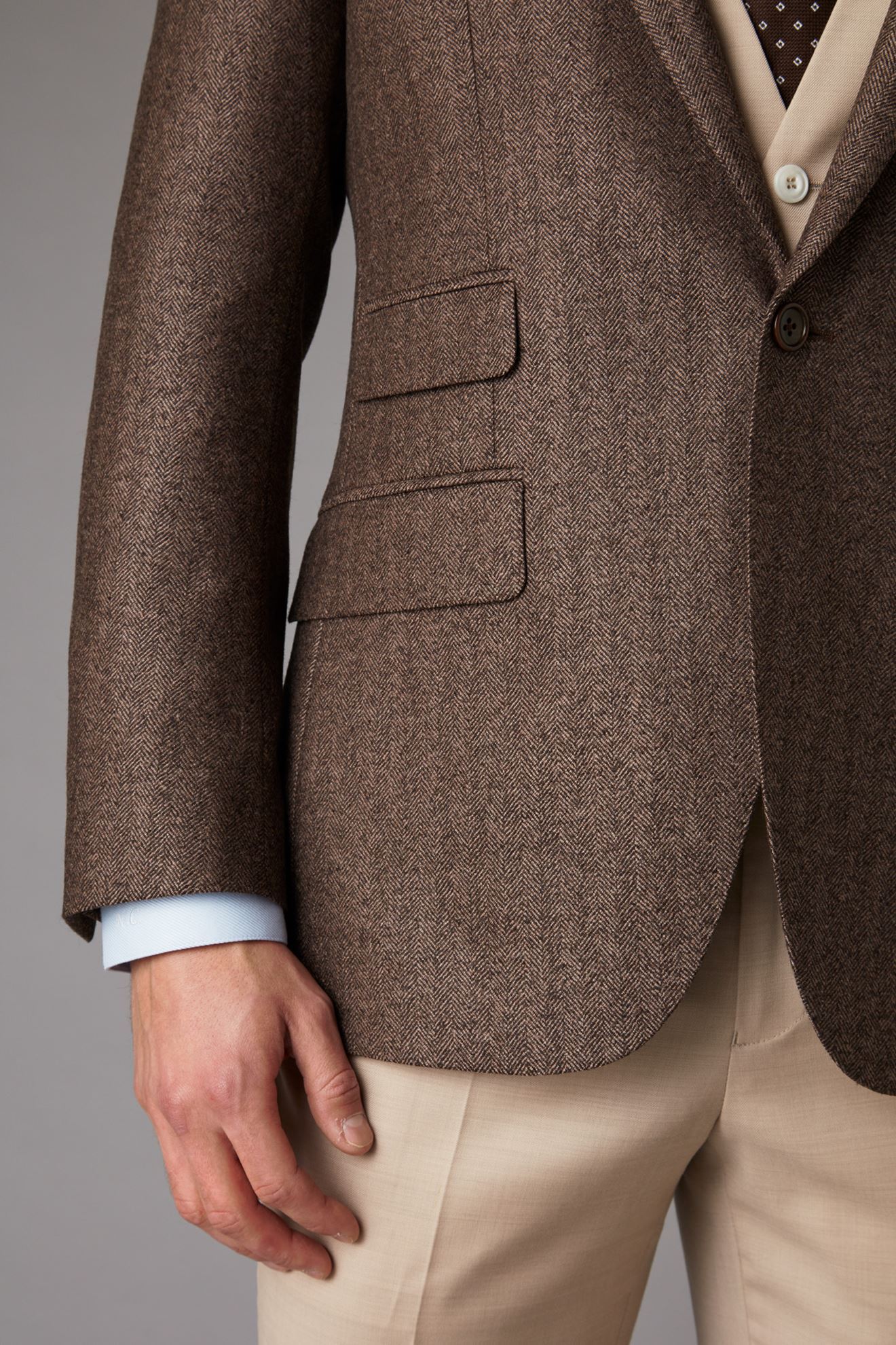 Stand out in a sea of suits in our super-sharp brown tweed effect jacket. Single breasted for a streamlined silhouette, this classic number features h...