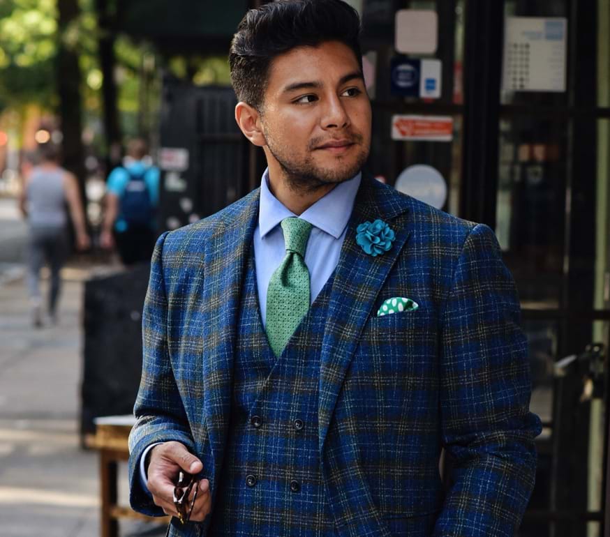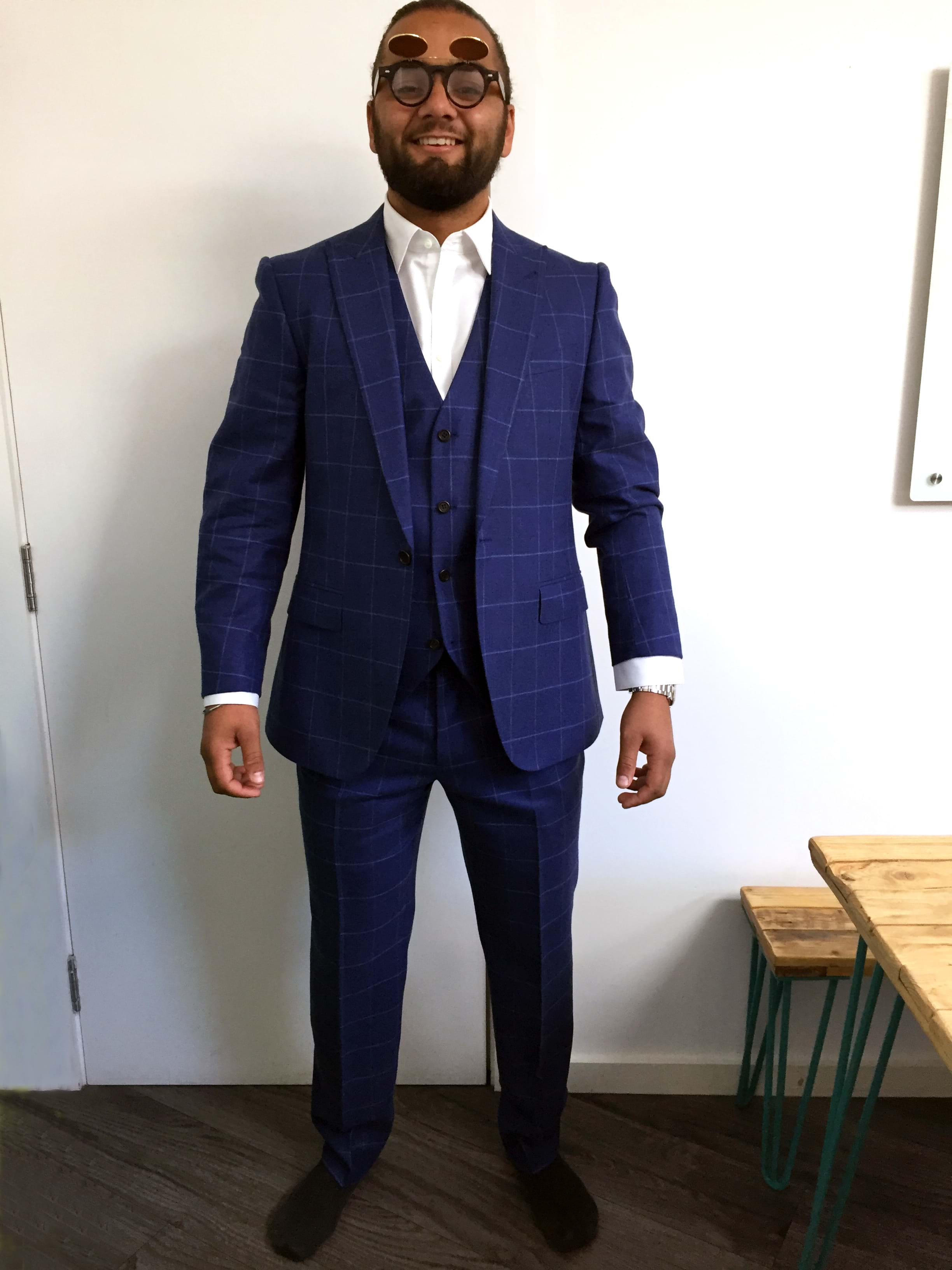 As a menswear blogger with 40k Instagram followers, Diego is constantly on the look out for stand-out suits. Our 300+ range of fabrics had plenty of options, but this blue-check tweed effect suit was the winner.