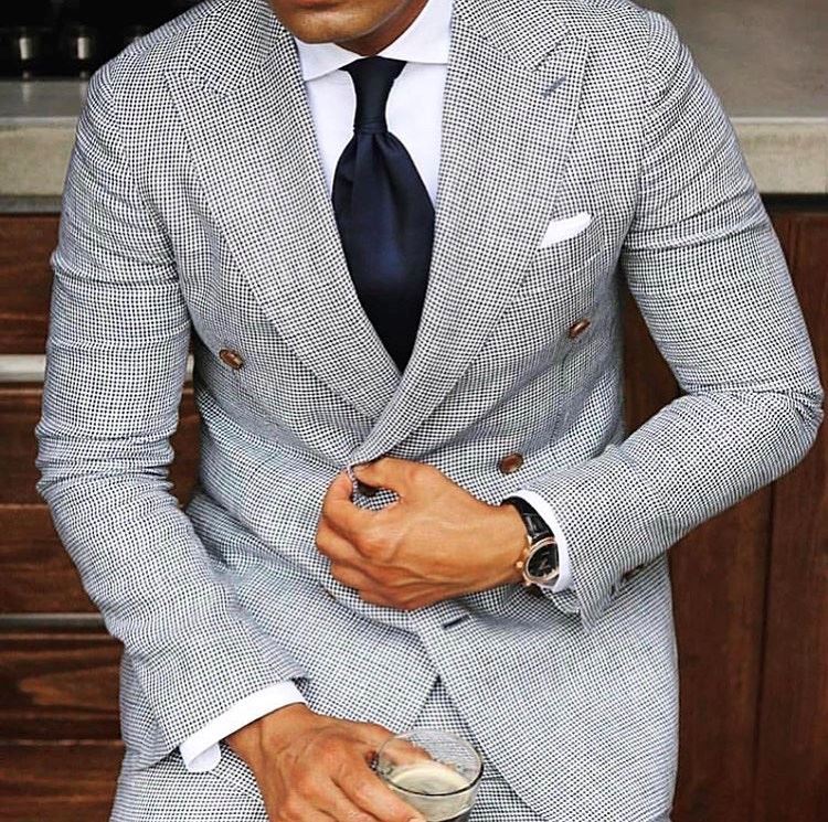 Double-breasted two-piece suit with extra-wide peaked lapels. Tapered trousers. Complete the look with a simple white pure cotton shirt. We recommend ...