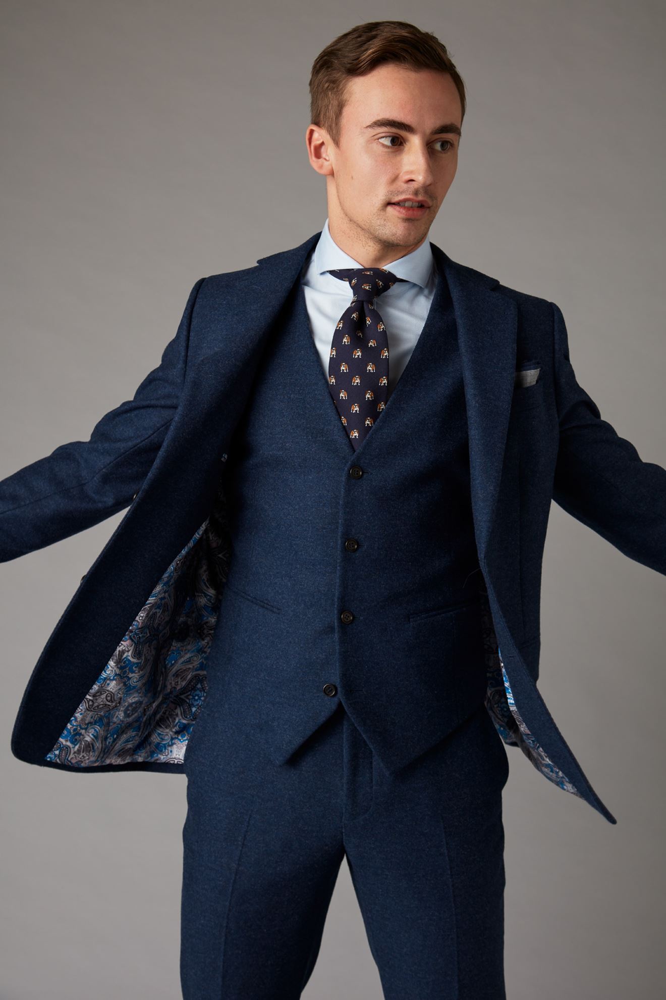 Blue tweed effect three-piece suit