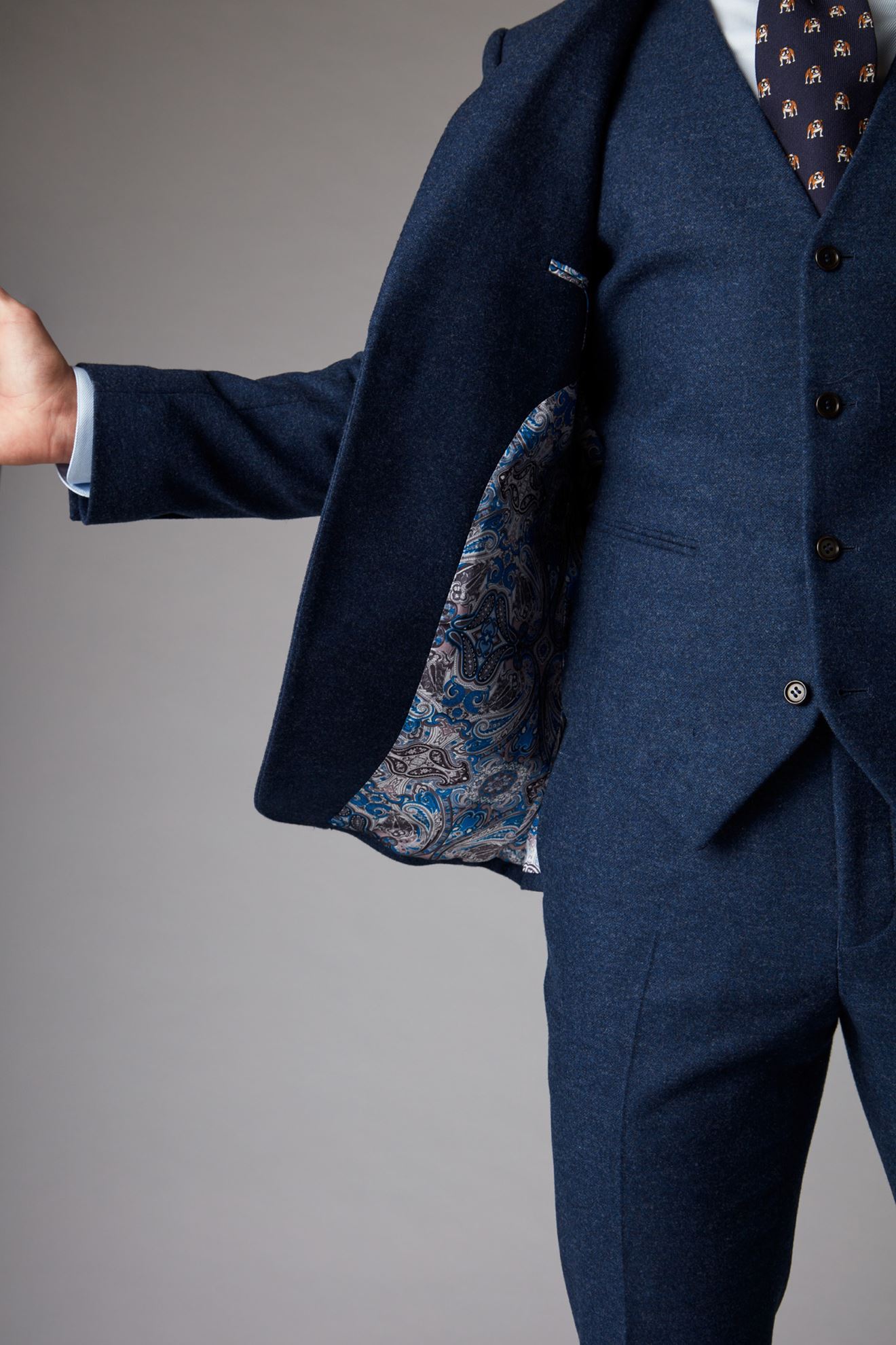 Our key customisations are lining, embroidery (up to 2 lines on the inside of the suit jacket), and buttons, but absolutely anything you like about the suit is customisable and we can accommodate almost any request - feel free to send across a specification if you've been dreaming about that suit with exactly 4.5inch lapels!
