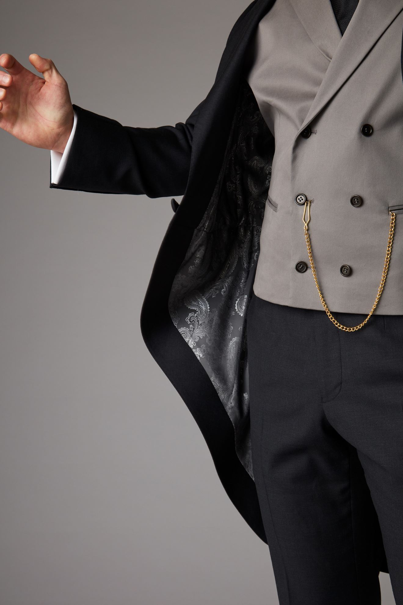 Go for the sophisticated look with the Beckham three-piece morning suit. With a double-breasted waistcoat for a bold silhouette, this classic grey num...