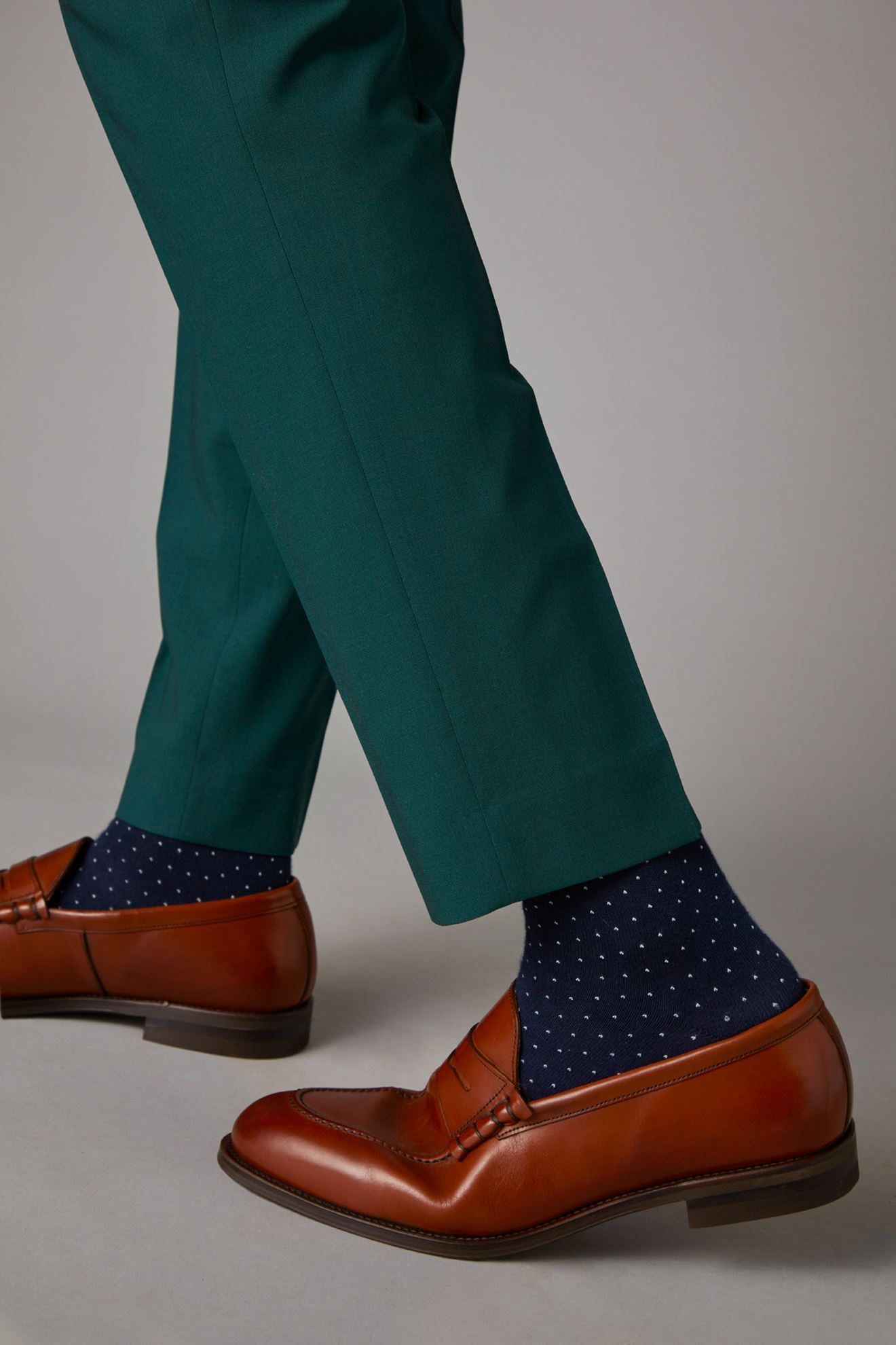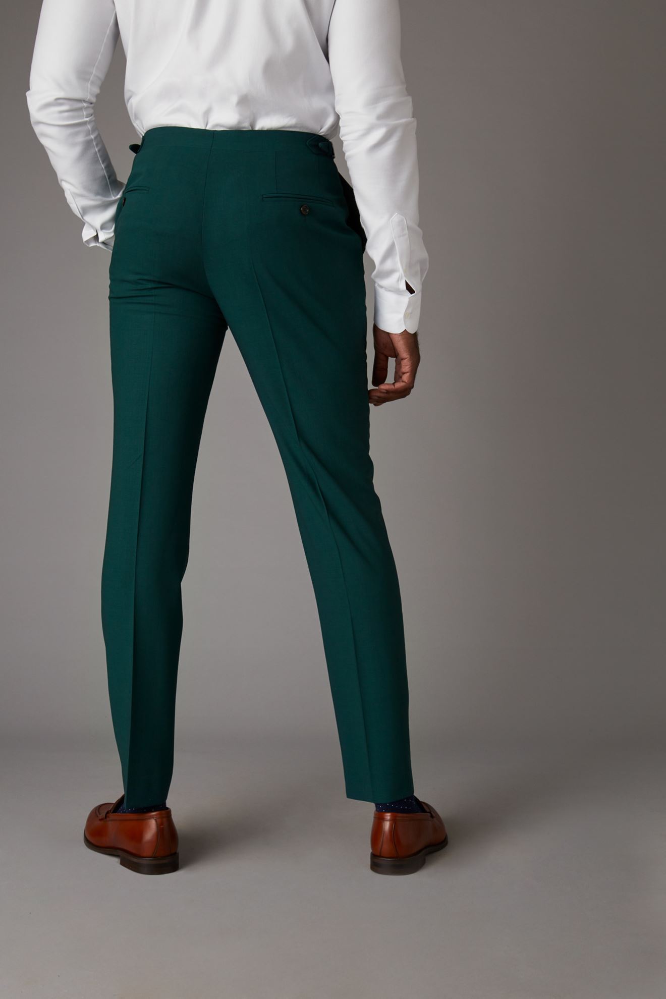 Green trousers finished with silver buckle side adjusters for that great fit.